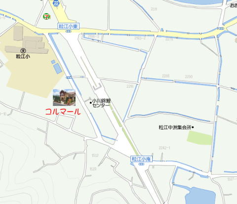 倉敷方面からは粒江小東の交差点を右折し、すぐに左折してください